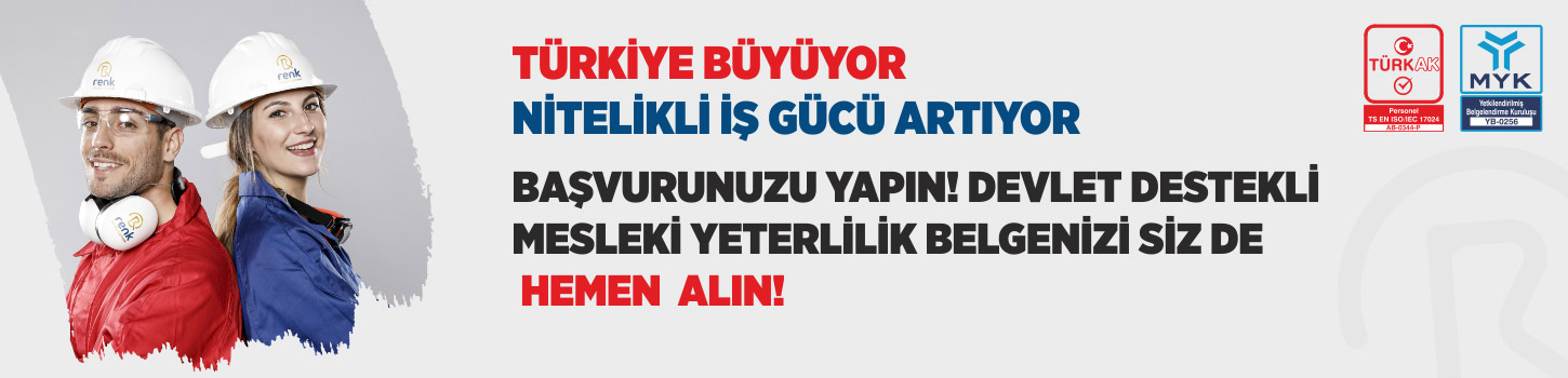 Renk Akademi Eğitim Belgelendirme ve Danışmanlık Hizmetleri Limited Şirketi, Mesleki Yeterlilik Kurumu (MYK) tarafından yetki kapsamındaki ulusal yeterliliklere göre sınav ve belgelendirme faaliyetlerini yürüten Yetkilendirilmiş Belgelendirme Kuruluşudur.